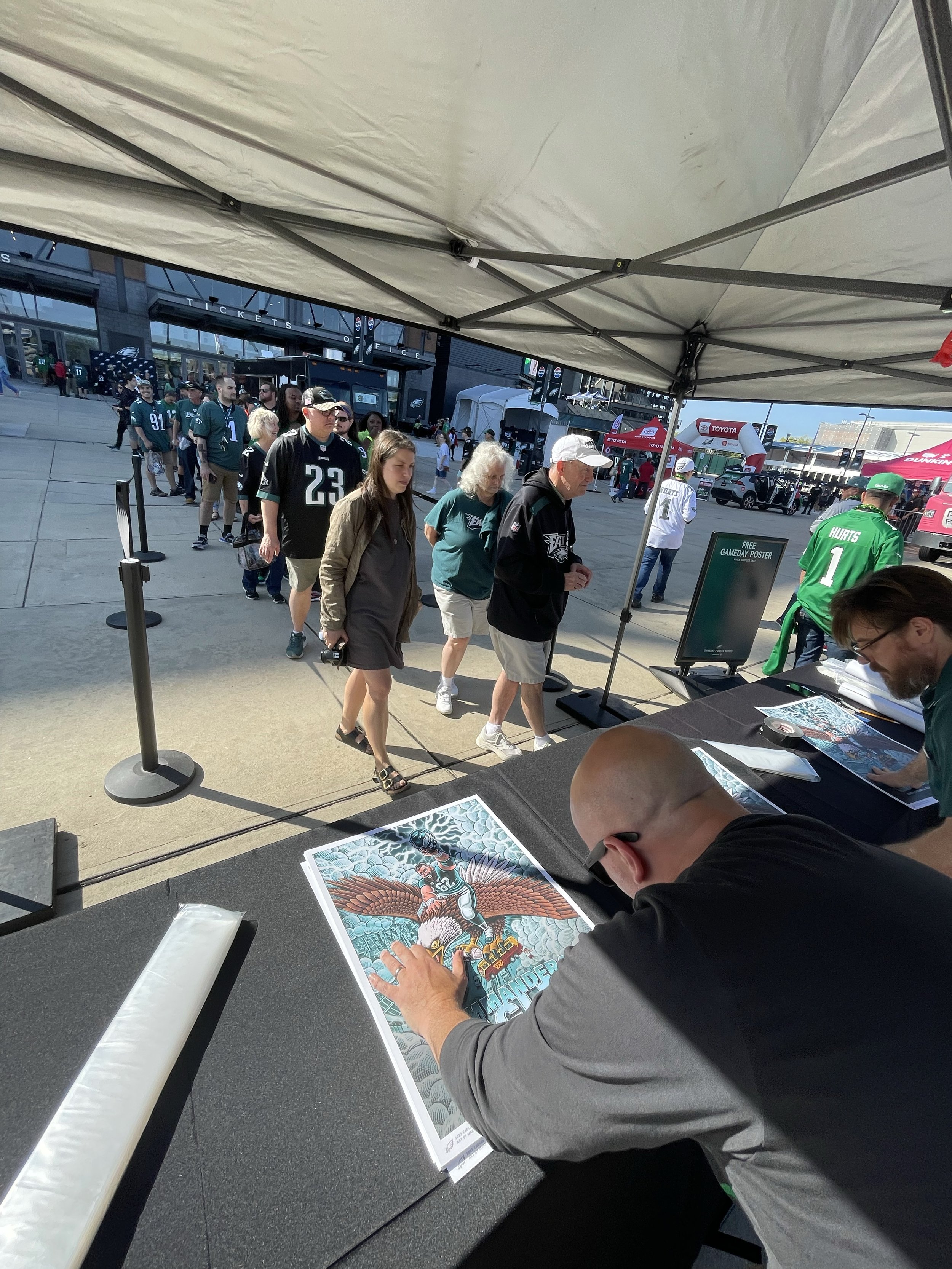 I was honored to get to work with the Philadelphia Eagles on this Heavy Metal-inspired gameday poster featuring a crazed version of Eagles great Jason Kelce riding a giant bald eagle over Philadelphia. 400 posters were signed and given out to fans prior to the game.