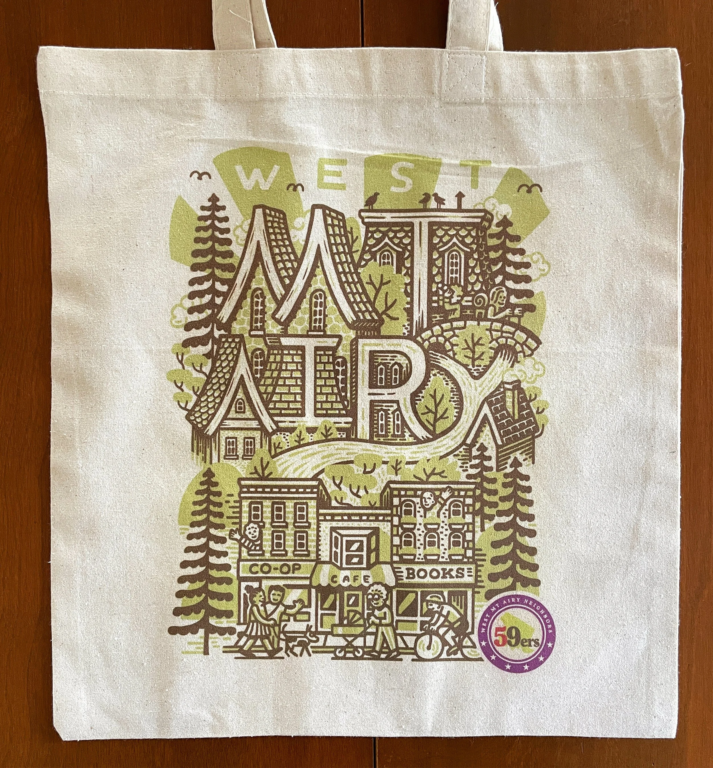 I was commissioned by my local neighbors association to create a graphic celebrating and promoting the neighborhood on prints, shirts, and other merch. When a very prominent wall became available, I pitched them on turning the graphic into a mural, and, together with Karen Onorato, we painted Welcome to Mt. Airy, the neighborhood’s newest mural.